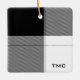 Modern plaid pattern in black & white. Custom INITIALS in Black. Easy to personalise text, text colour, font. Handsome for any slick home decor or person, event favour, or occasion, holiday tree. Modern, Preppy, Timeless. Mix and match entire Plaid / Keepsake Collections by TMCdesigns.