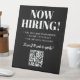 Customise this Black & White Modern QR Code Now Hiring Pedestal Sign with your URL and text.