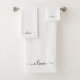 Black White Modern Script Girly Monogram Name Bath Towel Set