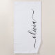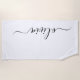 Black White Modern Script Girly Monogram Name Beach Towel