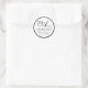 Elegant Monogram Wedding Favour Thank You Sticker. Personalise with the last name initial and the bride name and groom name. By Elke Clarke ©2009. Fully customisable bu using the edit menu, including the colours of the text and the circle design and background. "Customise it" with your personal information and use it to seal your wedding thank you card envelopes or add to your wedding favours.