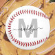 Create Your Own Custom White Softball Name Monogram Design. This design features a classic softball graphic set against a clean white background. A light grey initial is paired with your name in bold black script for a sporty and modern look. All colours (aside from the red stitching) can be customised to match your style. Makes a fun party favour, sports-themed birthday gift, team keepsake, or coach thank-you. A playful way to celebrate the softball fan in your life.
