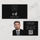 Black white monogram photo Qr code logo Business Card