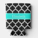 Black and White Moroccan Quatrefoil Trellis Pattern #5, Bright Aqua Ribbon Name Monogram Label