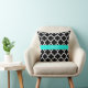 Black White Moroccan #5 Brt Aqua Name Monogram Cushion