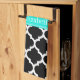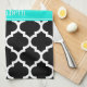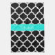 Black White Moroccan #5 Brt Aqua Name Monogram Tea Towel