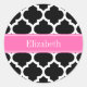 Black White Moroccan #5 Hot Pink #2 Name Monogram Classic Round Sticker