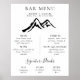 Black White Mountain Calligraphy Wedding Bar Menu Poster