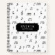Black & White Musical Notes Symbol Pattern Name Notebook