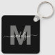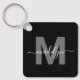 Create Your Own Stylish Modern Custom Black and White Monogram Square Keychain.