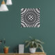 Black white op art optical illusion abstract custom print/poster, featuring a geometric B&W optical illusion chequered pattern of squares, rectangles and lozenges that form a circle and a sphere in the centre.