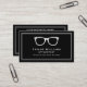 This plain and simple black and white minimalist custom name typography glasses design might be right for you. Just input your information in the text fields and you're done. If you want to customise the optometrist design some more, you can change the font, font size, font colour, background colour, and the colour of the icons by selecting them in the layers panel in the Design Tool and editing them. The design is yours to personalise as you wish.