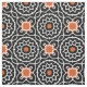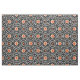 Elegant fabric design featuring a seamless pattern made of geometric shapes in white and orange on a black background.