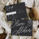 Designed to match our Black & White Oversized Script wedding invitations, this elegant typography based RSVP postcard is perfect for traditional mail-in RSVPs. Personalize with your desired RSVP date and custom accept and decline wording in classic serif lettering aligned at the lower right. Our Ash colorway makes a classic statement with crisp white lettering on a soft black background.