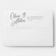 Designed to match our Black & White Oversized Script wedding invitations, this elegant colour coordinated envelope features your names and return address on the back flap. Our Ash colorway makes a classic statement with soft black lettering on a crisp white background.