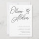 A beautiful typography based wedding invitation featuring your names in oversized script lettering at the top. Personalise with your wedding details in classic serif lettering aligned at the lower right. Our Ash colorway makes a classic statement with soft black lettering on a crisp white background.