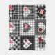 Black White Patchwork Hearts Seamless. Fleece Blanket