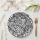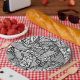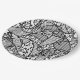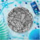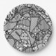 "Patterns Run Amok, 4" is the fourth in a series of black and white whimsical designs featuring a hand-drawn outline that's then filled in with repeating patterns. Circles, rings, squares, bulls-eye, targets, flowers and more are interspersed over the surface in an unpredictable array.