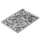 "Patterns Run Amok, 4" is the fourth in a series of black and white whimsical designs featuring a hand-drawn outline that's then filled in with repeating patterns. Circles, rings, squares, bulls-eye, targets, flowers and more are interspersed over the surface in an unpredictable array.