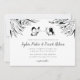 This wedding invitation features black and white illustration of two butterflies (bride and groom) flying around rich floral background. Design is done in elegant pen and ink technique. The ideal choice for spring and summer weddings. Personalize your wedding information at the lower area of the card in a mix of traditional block and modern calligraphy fonts. Back of the card features black and white botanical pattern.