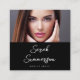 Make a lasting first impression with this elegant black and white business card design, featuring a customizable photo on the front with your name in a modern script font. The clean, minimal layout highlights your personal brand while keeping the focus on your professional image. Add your contact information, title, and social media details on the back for a sleek, organized presentation. Perfect for creatives, beauty professionals, entrepreneurs, and anyone who wants a timeless design that stands out with style and confidence.