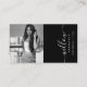 A modern black and white photography themed business card design incorporating your details and your QR Code. This elegant business card is ideal for all types of professions. A simple and professional way to introduce your business. Personalise your details to create your own unique business card. A perfect business card for anyone.