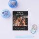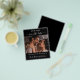 A black background colour. White, large hand lettered script with swashes and the text: save the date. Personalise and add your photo, date and names.