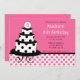 Start your party off right with our cute Birthday Invitation featuring an adorable three layer black and white polka dotted cake on a pink background. Guaranteed to put a smile on your face. Perfect for any age Birthday Party! Just personalise with your information and you're all set to go! Matching items including birthday postage stamps, favour stickers, thank you cards & thank you stickers are also available in our shop.