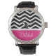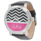 Black White Pink Chevron Custom Watch