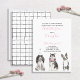 Your baby girl is turning two! Invite your special guests with this adorable invitation featuring hand painted watercolor dogs, in pink, black and white. Baby's name, "Turning Two" and the date are in pink hand lettered script typography, and personalised in a chic modern black sans serif. The back of the card features a cute black and white hand drawn check design. Copyright Elegant Invites, all rights reserved.