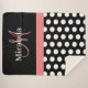 Black White Pink Monogram Script Polka Dot Sherpa Blanket
