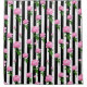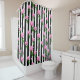 Black White Pink Rose Flower Stripes Lines Shower Curtain