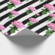 Black And White stripes With pink rose Flower stalk retro vintage inspired pattern wrapping paper
