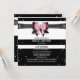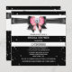 A single faux satin black and pink bow edged with a golden stripe has a diamond inlay and is set against a white and black striped background edged with faux silver glitter sparkles. This chic and stylish design is ideal for a bridal shower; birthday party; a special anniversary or even a business event. Personalise the wording to make sure it suits your special celebration.