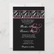 This design with its black and white with pink accents flame reverse zebra print peeking out from behind a black background mixes contemporary and classic elements, and makes an elegant wedding invitation.