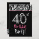 Black White Pink Zebra Stripes - 40th Birthday Invitation