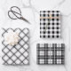 Elegant rustic wrapping sheets, perfect for Christmas, with three different patterns in white and black. Plaid, buffalo check, and tartan.