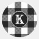 Monogrammed envelope seal, or favour bag sticker featuring a rustic black and white plaid