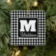 Black & White Plaid Monogram Name Christmas Ceramic Ornament