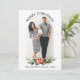 Modern Trendy Rustic Black & White Buffalo Plaid Photo Arch Merry Christmas Holiday Card includes Watercolor Poinsettia Floral with pine cones and winter greenery.