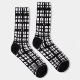 Goth and punk vibes are found in this black and white plaid pattern with a faux textured effect of a paint splatter.