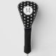 Black and White monogram golf head cover, with a polka dot pattern design and a white circular border. With black lettering, you can personalise with your own initial. A classic golf accessory for your next game.