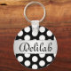 This is black & white Polka dots name monogram personalised keychain. You can customise this with your name, monogram or other text. You can also change the font, adjust the font size and font colour, move the text, add or adjust text fields.