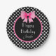 Black & White Polka Dots Pattern Pink Bow Birthday Paper Plate
