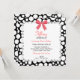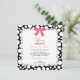 A sweet lace border frame and a fun polka-dot background pattern adorned with a darling little bow make up this Sweet 16 birthday party invitation.