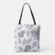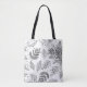 Black & White Print Bag II designed by Jean Lazo. The pretty print on this black & white bag began as an ink drawing of a rose with leaves and pine sprigs.