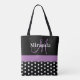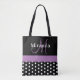 Black White Purple Monogram Script Polka Dots Tote Bag