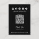 Black & White QR Jewellery Hair Clip Display Card: Infuse sophistication into your brand presentation using these contemporary jewellery display cards. Featuring a minimalist black and white botanical pattern, these cards are a must-have for fashion boutiques targeting female clientele. Your business logo can be prominently placed at the card's top. Arrange barrette hair clips and necklaces using designated cut lines. The front showcases a subtle grey botanical leaf outline. Flip the card to reveal your online presence (social media/website details) through a QR Code, fostering customer engagement. Conclude with a personalised thank-you message or a unique slogan at the bottom. Customise the display of social media icons according to your preference. Explore our coordinated range for a comprehensive branding solution.