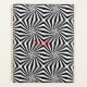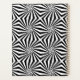Black and white pattern of spiralling radiating 4-point stars., customise with your own greeting, name, message, etc