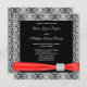Black white overlay red bow red black wedding invitation.